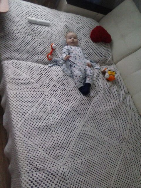 Я бы тоже связана побольше!!! У меня вот точно такая же история, связана поменьше, потому что моток заканчивался, а сейчас уже маленький, использую на коляску :(((