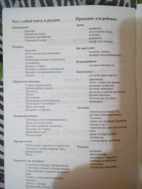 Ян, а в обменке нет списка? У меня список покупок для новорожденного и список вещей в роддом в конце обменки напечатан