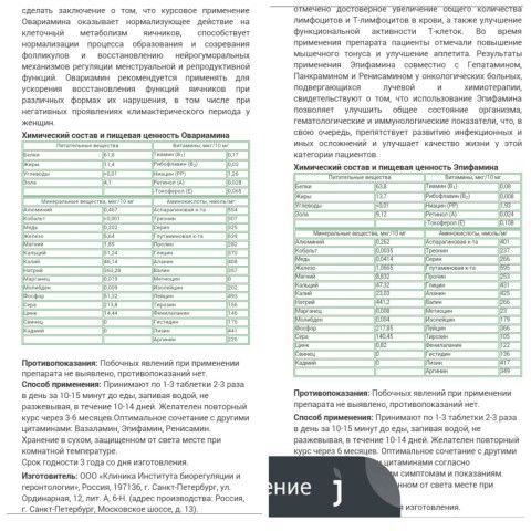 Пройдя много и всего, разучилась следовать принципа слепого котенка. Котенок вырос, и начал думать своим маленьким мозгиком. Уже немного сожалею что не пошла на врача?(да, сарказм?, все равно диалог тут самой с собой) продолжая изучать то что мне назначат, пришла к выводу что все цитамтны имеют один и тот же состав!!! Но с разными дозировками компанентов. Т.е. надо лечить голову насыпем побольше для нее. А если лечим опу, то побольше для опы? вобщем особо состав нигде не офишируют, кроме одного сайта, вот скрин с него оваримина и эпифамина. Цена заметте у эпифамина в два раза выше? По составу аналогичны!!! В оваримине нет разве что метиоЦина. И то думаю опечатка. Гугл вообще не находит такого слова. А мне на ум сразу пришел старый, добрый метионин. Мне кожник для печени его советовал, когда я с прищами аллергичными пришла. P.S. Каждый верит в то что верит, или же эффект плацебо никто не отменял. P.P.S. Нет я ни в кое мере не ругаю этот препарат, состав лично изучила и прочитала. Просто обидно за ценник!!!? В состав входят полезные копеечные препараты, а нам их уже как положено много рублей втюхивают???. Но если выпишут пить все равно буду, но думаю только оваримин. Т.к. состав подобран хороший, да и эффект плацебо верю?