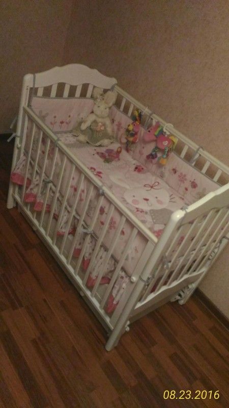 У нас вот такая кроватка, очень выручал маятник… Иногда не вставая качала ногой, ночью.раньше по другому всё стояло. Сейчас продаю кроватку)