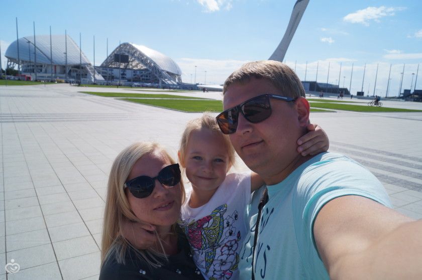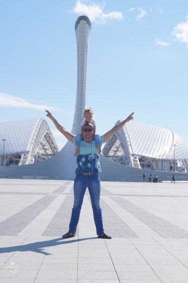 Начну сначала: за неделю до поездки у Веры поднялась температура и держалась вплоть до четверга под 39! А ехать нам надо было в ночь с пятницы на субботу! Слава Богу в пятницу температура спала. Ночью мой папа отвез нас в Воронеж на вокзал и уже оттуда мы поехали прямиком в Адлер. Поездка заняла 24 часа. Вера перенесла её отлично — никому не мешала (мы ехали в плацкарте), играла, смотрела мультики, спала хорошо, а вот кушала плохо очень и потом я выяснила причину и температуры и её отказа от еды! Уже в поезде у неё во рту появились язвочки — стоматит! Хорошо я брала с собой аптечку и сразу стала обрабатывать ей рот мирамистином (за три дня вылечили все язвы).Приехали мы в Адлер в 7 утра! А заселение у нас в 12) Но море встретило нас солнечной погодой и мы сразу поехали на пляж (чемодан оставили в доме у хозяйки, у которой снимали жильё). В общем переоделись в купальники и сразу прыгнули в воду! К слову температура воздуха была +22, а воды +26! Первый день был очень насыщенным, хотелось всё посмотреть (мы с дочей уже были в прошлом году на море в этом же месте, а вот муж за 26 лет впервые на море). Поэтому у нас была и велопрогулка и вечером пешая прогулка до Олимпийского парка и ресторан...