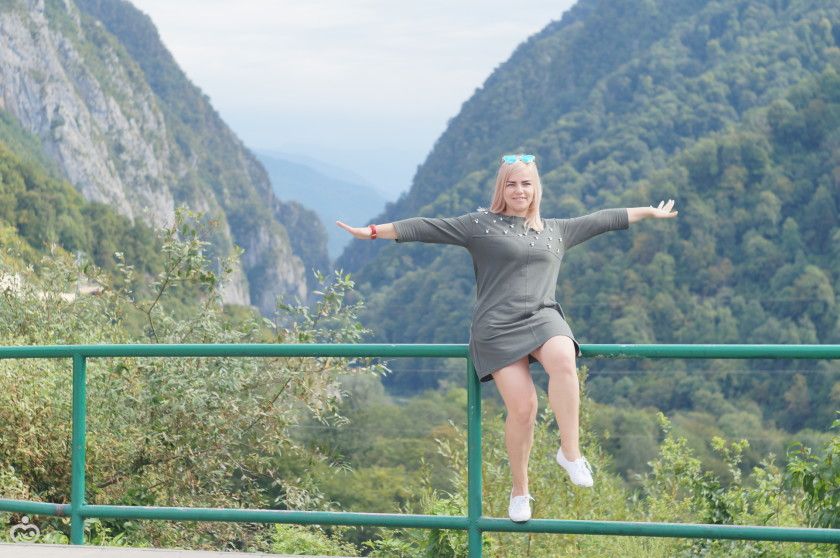 На второй день взяли экскурсию в Красную Поляну (хотя изначально планировали своим ходом). И вы знаете я не пожалела (500руб с человека, Вера бесплатно)! Нас забрали от отеля, рассказывали про Сочи, Адлер. Заехали на смотровую площадку в Агурском ущелье, потом на Нарзаны (пили там воду лечебную… бррр… она ужасна! привкус железа во рту.), на водопод Девичьи слёзы (действительно и смех и слёзы, а не водопад) и потом уже приехали в Красную поляну! Поднялись на РозаПик (2327м над уровнем моря), покатались на открытом подъёмнике! Кстати внизу температура была +23, а наверху +4 всего! Но виды конечно шикарные! Приехали мы домой только ближе к 8 вечера.