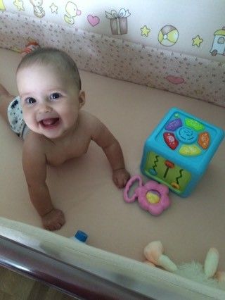 Очень любит кубик, вот в пол года как раз начала проявлять интерес, а сейчас так и вообще, 20 минут с ним может просидеть.