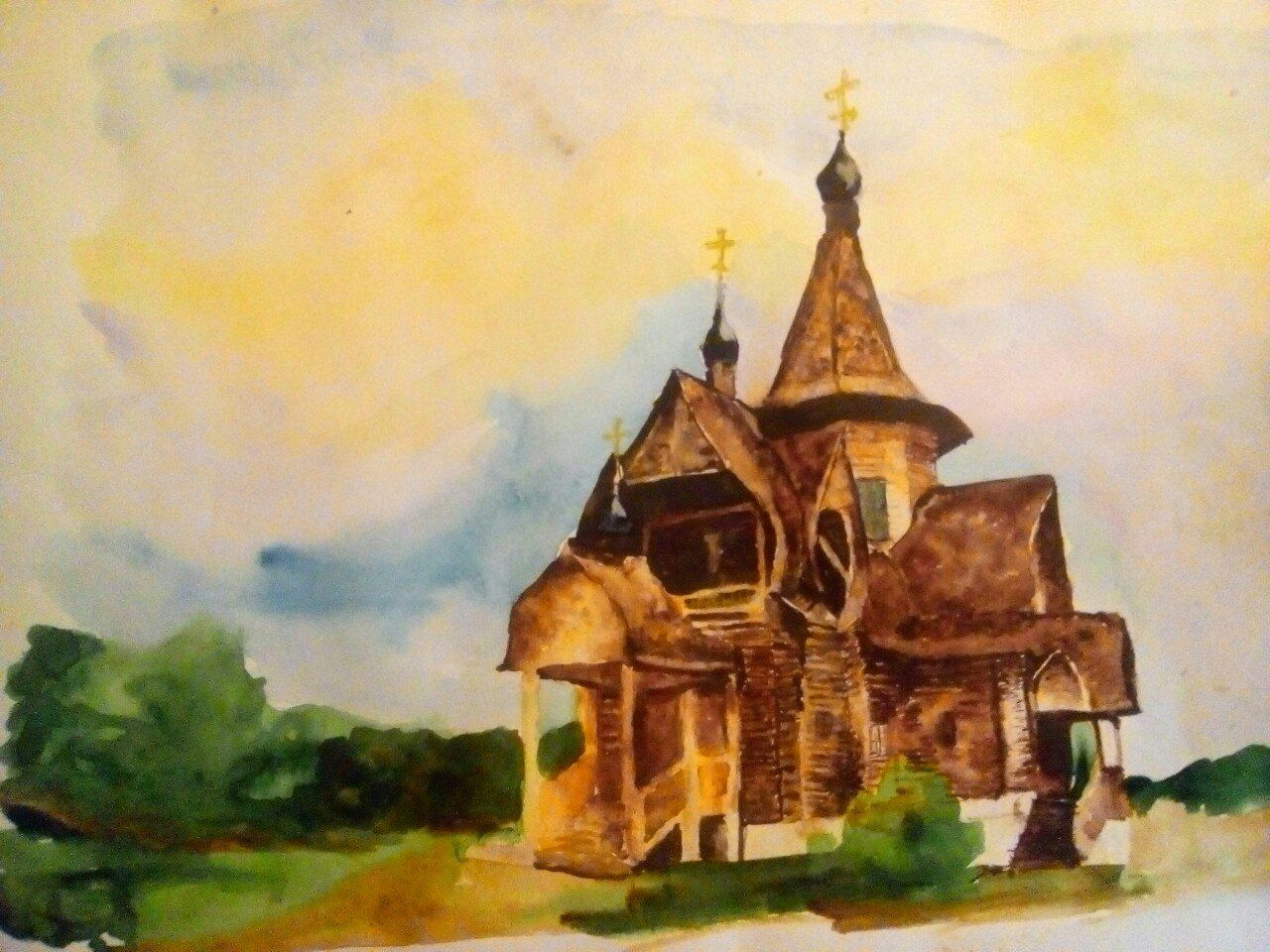 P.S. Аляухово вдохновило меня к творчеству. Захотелось нарисовать храм и батюшку.