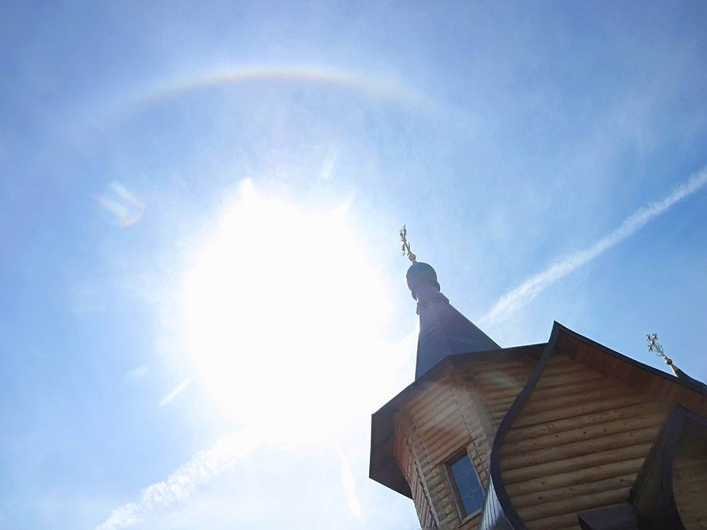 Во время причастия над храмом появилась радуга, которая исчезла в онце службы.