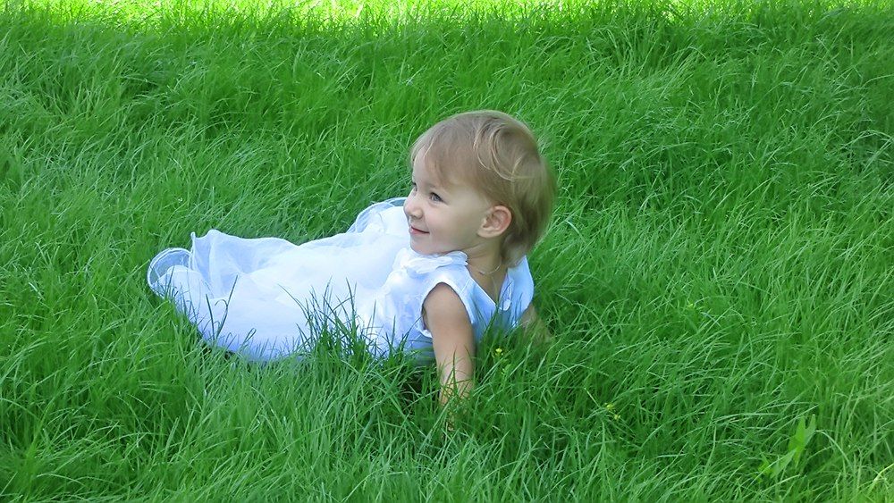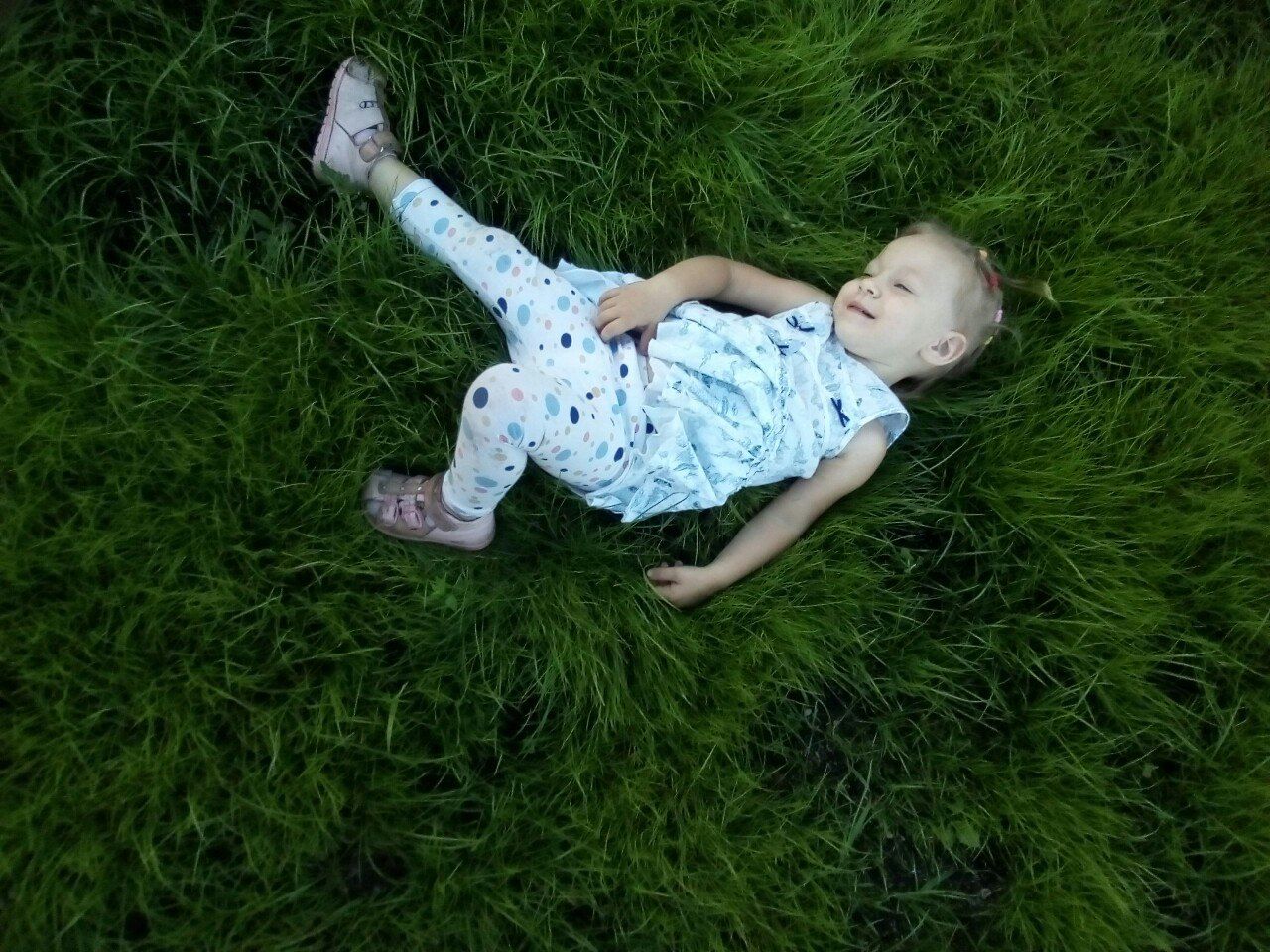 Арина с удовольствием валялась в свежей сочной траве