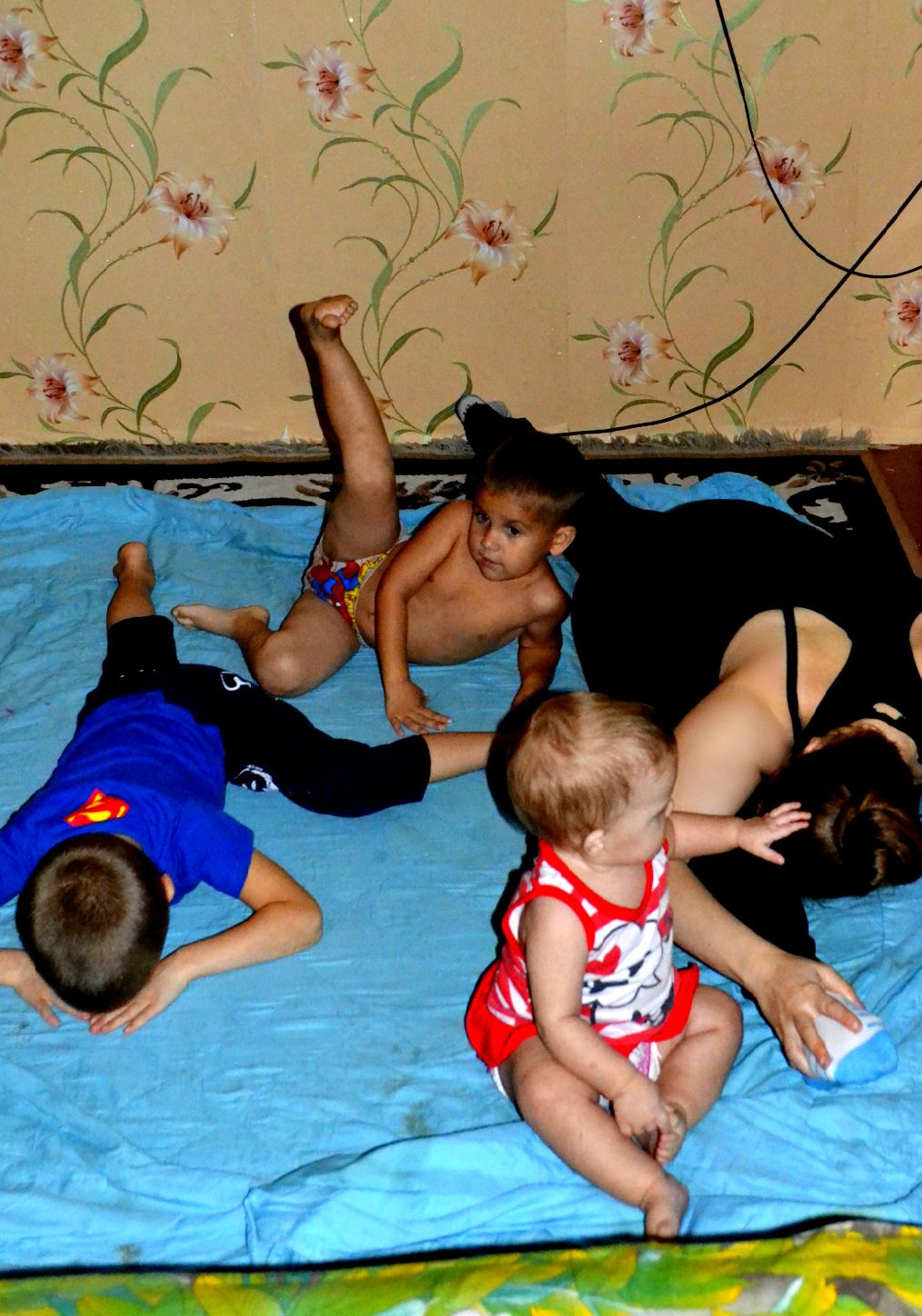 Ну а что бы мамке скучно не было, маленькие «спортсмены», составляют компанию!