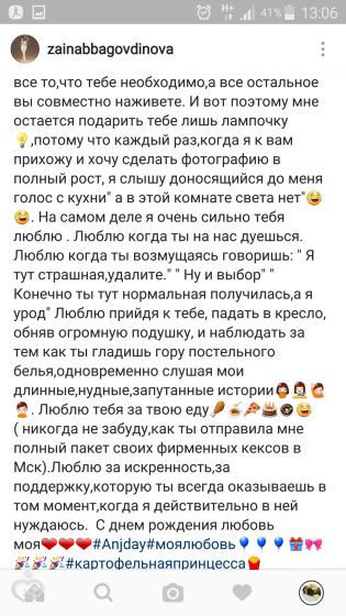 Нас 3 лучшие подруги, одна приехала на время, а другая учится в Мск. Так вот она меня очень удивила — она испекла для меня торт, там в Мск, и поздравила. Зайка, которая очень далека от выпечки, она у нас королева картошки ?. Это было настоящим сюрпризом — ее первый в жизни торт. И покажу вам ее пожелание ?