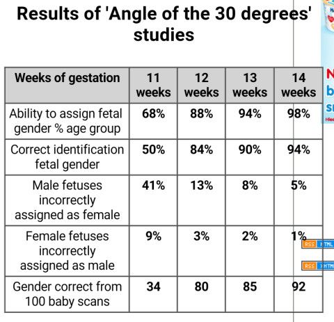 По углу наклона полового бугорка определяют и вероятность ошибки при нормальном узисте и положении ребенка минимальна. К 16 неделе они как правило сформированы. А таблица точности вот. Чаще ошибаются, говоря, что будет девочка… А вот с мальчишками редко.