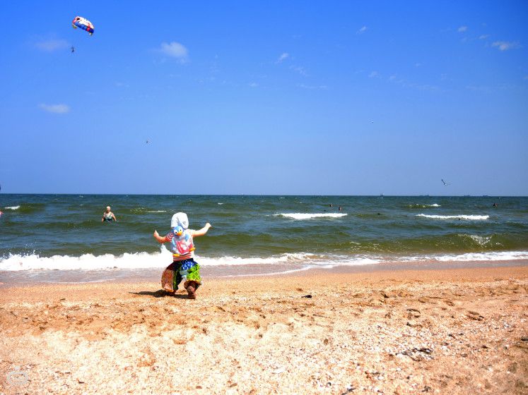 Ребёнок был в восторге от моря. Когда она его увидела впервые, так ринулась к волнам, что я еле успела её поймать. 4 дня мы отдыхали в станице Голубицкой на пляже, у Азовского моря, почти безвылазно. Нам даже случилось таки раздобыть палатку у моего дяди (в основном мы жили у него в домике) и переночевать одну из особенно душных ночей прямо на берегу, а я встретила рассвет и сделала неплохие снимки.