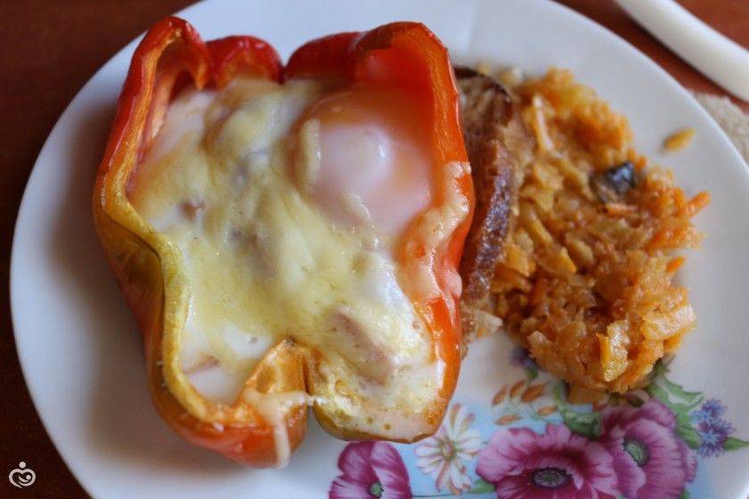 я под низ ложила тостовый хлеб, а в запечённый перчик ложила сразу тёртый сыр, потом чуть ветчины или сосисок, а дальче выбивала яйцо, и снова сыр. Тостовый хлеб становился гренками, когда ешь, то яйцо растекается (не сильно запекала). Вкусно получилось. Случайно наткнулась на рецепт похожий, но переделала под себя