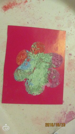 Это задание пришлось Алисе больше всего по душе. Она надолго увлеклась рисованием клеем ПВА и посыпкой рисунков меловой крошкой)