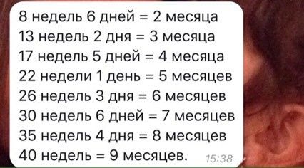 Сейчас сделаю просвещение, если кто-то действительно не знал. Беременность исчисляют акушерскими неделями и месяцами. Отсчет начинается от даты последней менструации. Акушерский месяц-это 4недели. Беременность длится 10 акушерских месяцев. Все просто.