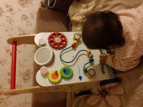 IT'S I MAGICAL это каталка, в магазинах imaginarium продаются.есть такие и других фирм, каталка с развивающим столиком посмотрите(другие фирмы пластиковые правда), потом ребенок учится ходить, держите за не ручку и топает)))