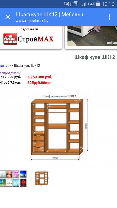 А мы заказали сейчас в магазине на Долгобродской. Мебельмакс который. Но у нас размер меньше 2050×2200×650. По цене 600руб. А просчитывали у ребят на производстве шкафов цена 590$.