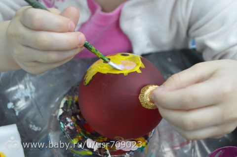 Детям дали прозрачные шарики, на котрый нужно было специальным клеем нарисовать все что хочется.