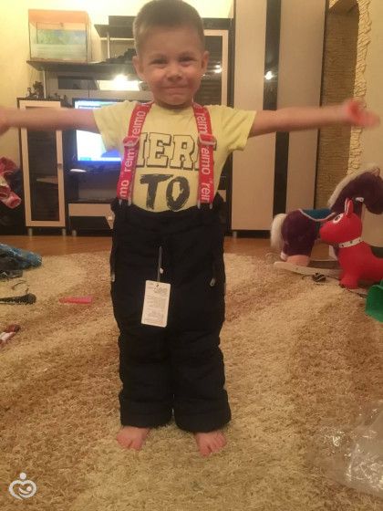 размер взяла 110, и штаны и куртка с хорошим запасом, думаю на 2 зимы хватит, если повезет))))))) а еще на сменку этой куртке у нас есть Акуловский пуховик, тоже очень теплый. в принципе как по мне так не плохо смотрится вместе)))))))