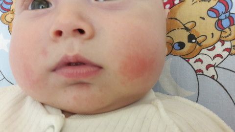У малыша щечки красные, иногда на лбу тоже краснеет. Появляется и пропадает.Мы на гв. Сладкое и выпечку я ем, конфеты нет. Что это такое? Аллергия или диатез? (( подскажите пожалуйста.фото прилагаю в комментариях