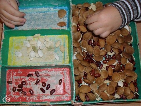 3 можно насыпать разные зерна и чтоб ребенок это сортировал.