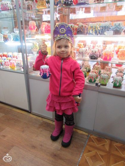 Погуляв по территории и покачавшись на качелях, мы с Аней решили заглянуть в разные магазинчики. Попался нам «Свечной заводик княгини Ольги» (не спрашивайте, почему он так называется))..
