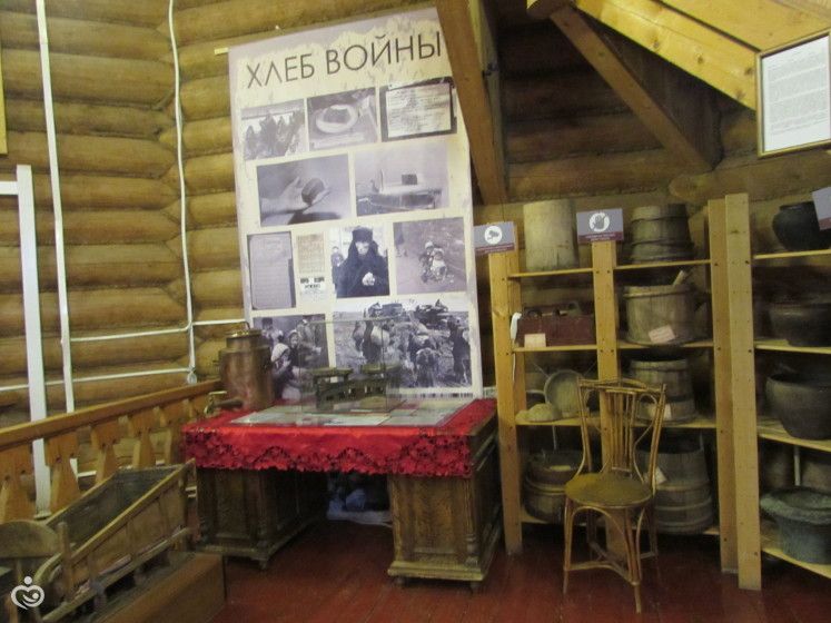 В другом зале экспонаты — предметы «пищевого» обихода, хлеб в жизни и быте людей (фотографии и иллюстрации праздников и пр.), примеры хлебобулочных изделий старины (караваи, подовый хлеб, сайки, кренделя, баранки и пр.).