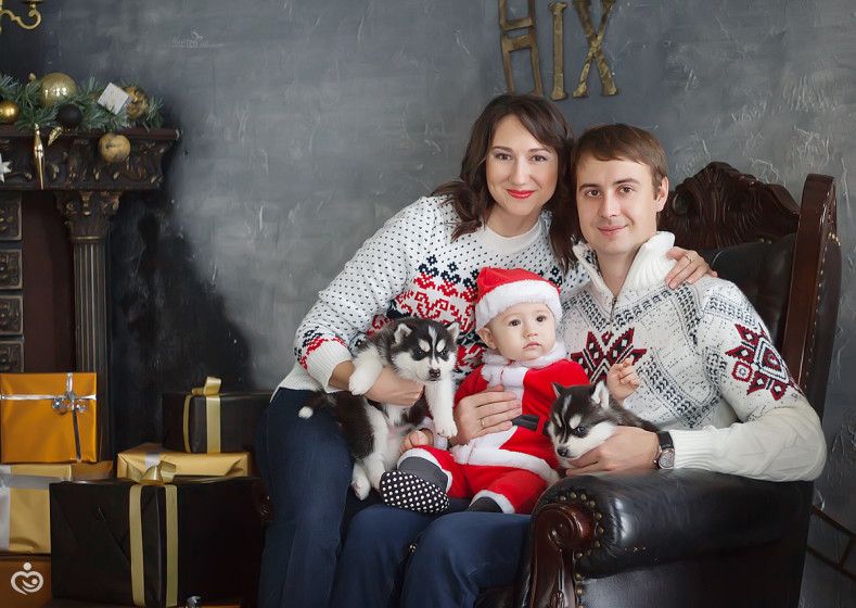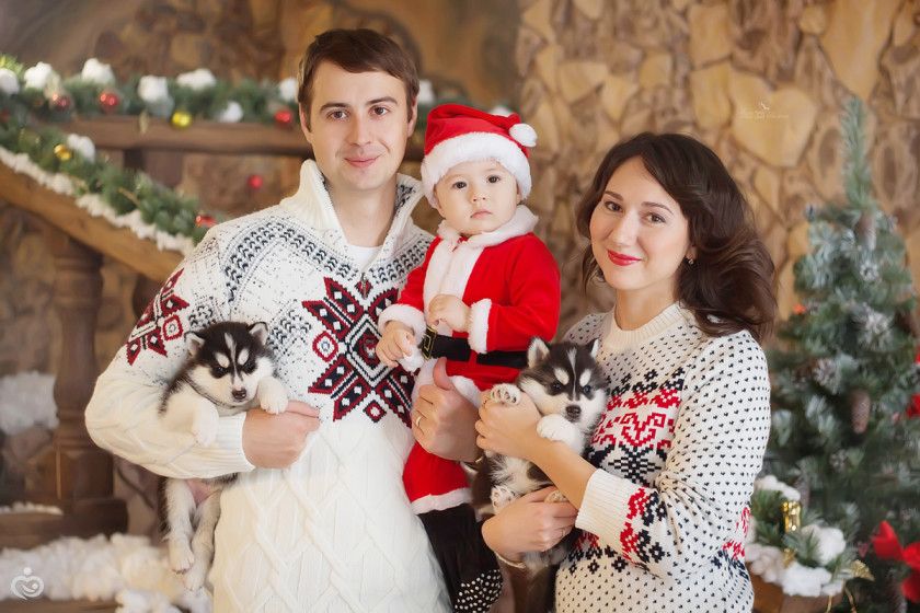 Класс!) очень гармонично получилось, новогодняя тематика и щенки хаски, здорово!!!
