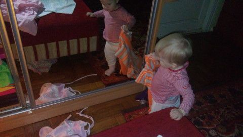 Понятно, что написала не то… А на счет манюськи, так она умничка… В 10 месяцев такая хозяюшка