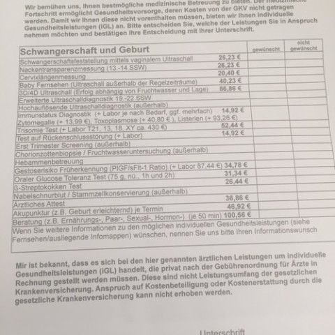 Мой гинеколог в Штуттгарте. Встала к нему на учёт в 8 недель! Так он нам с мужем бумажку эту дал и сказал подумать, что будем делать из этих анализов!