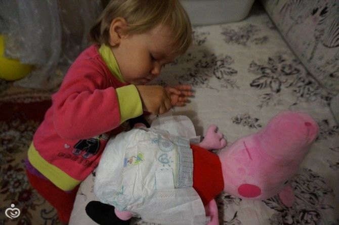 Сегодня у Ясении новая игра появилась = пялит памперс на Пеппу, потом отлепляет одну липучку и смотрит, пописала она или нет. Залепляет обратно и так по кругу минут тридцать… Потом поняла, что Пеппа все равно не писает и решила ее прогулять на улицу. В памперсе. На улице памперс никому снять с Пеппы не давала, чем позабавила всю округу и товарищей по песочнице. Пришла домой. Отлипила липучку, посмотрела, пощупала, позвала меня. Я тоже на это дело посмотрела и говорю, ой Пеппа написякала памперс надо снять и выбросить. Ребенок мой умный, хоть и пока не говорит. Показывает мне, что нет не пописякала, дескать сухо и все тут. Вот так вам, ктобы что понимал?!