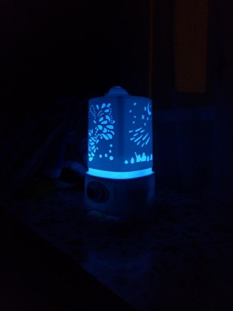 Сейчас дочка спит в своей комнате он там стоит, но у нас он вообще не шумит, без звука, пар прямо хорошо идет, подсветка синяя. Я когда его включаю даже самой легче дышать стает. Увлажняет, освежает.