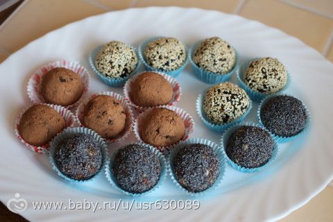 Из орехов и сухофруктов. Рецепты не даю. Просто размалываете сухофрукты и орехи, какие нравятся и лепите конфеты, все просто)).