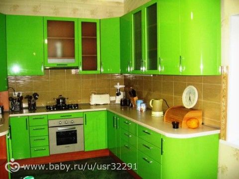 У меня такая проблема, никак не могу определиться со цветом кухни. Очень давно хотела цвет зеленое яблоко. Что то вроде этого.