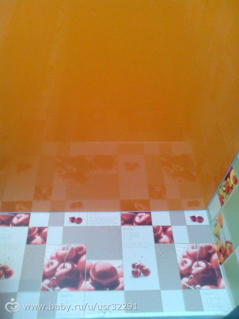 У меня зелёная кухня, оранжевый потолок но в кухне я сделала пару оранжевых ящиков… все считается… но обои у меня тоже яркие
