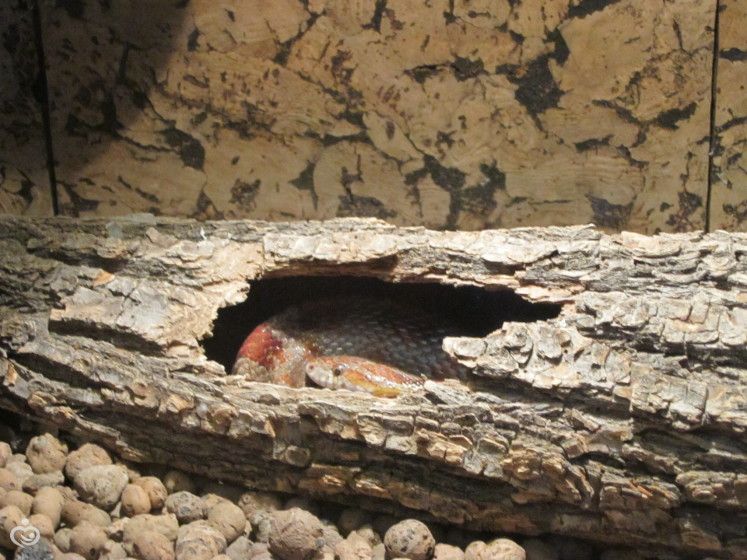 Змейки тоже попрятались кто где мог. Кто в уголочке свернулся, кто в глиняном кувшине, а этот красавчик вот внутри коры.
