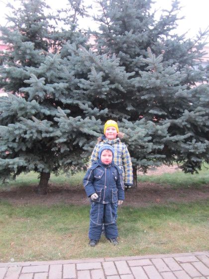 Пока шли до остановки, решили сфоткаться под елочкой