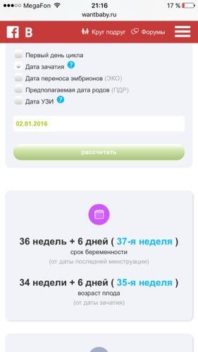 Вот смотри рассчитала в программе по дню зачатия 2января, но 2 января овуляция у нас была а зачатие могла наступить где то со 2-7 января примерно)!!! Так что у нас одинаковые сроки пдр у меня 26.09 по месячным, по овуляции на 24.09 а по узи ставят вобще на 14.09 Так как малыш крупный, но я считаю по овуляции на 24.09)?