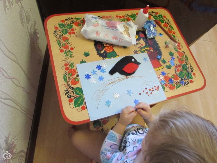 Делаем аппликацию со снегирем