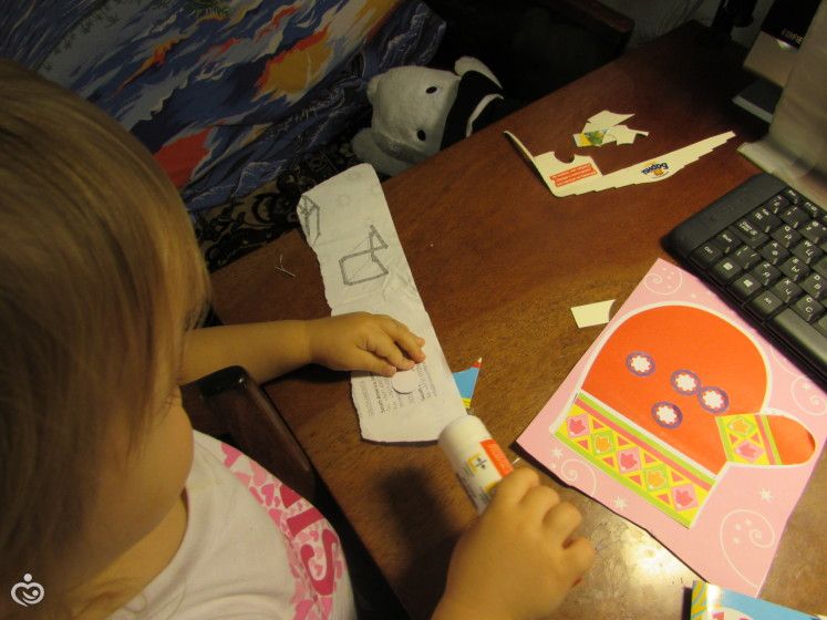 А потом рассмотрели фотографии кормушек для птиц и сделали аппликацию из кусочков бумаги «Кормушка»