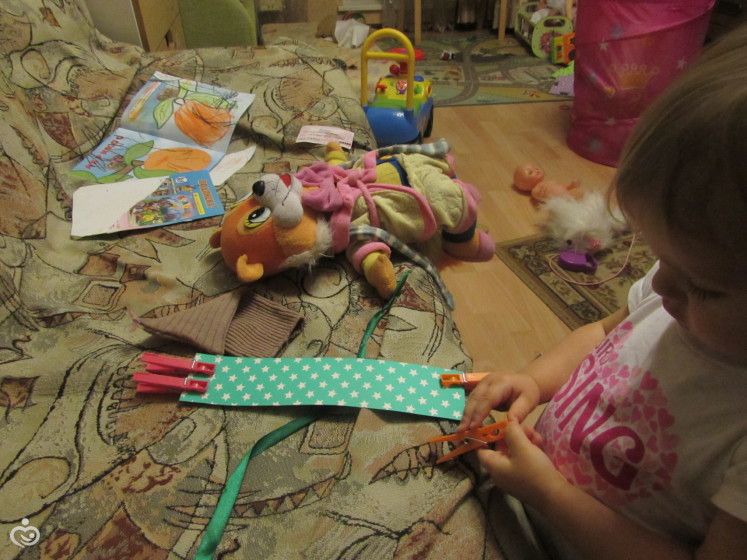 Делаем шарфик с бахромой (полоска картона+прищепки)