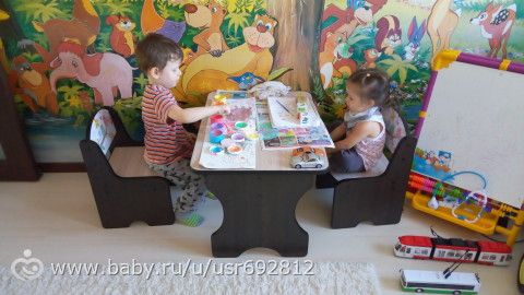 Вчера нам доставили долгожданный заказик… и вот какая красота с утра. Детишек не видно и не слышно, кто рисует, кто башни строит. Сынок учит дочку цветам, называет ей, а она повторяет, смешно так слушать)). Комплект делали на заказ, качество супер, добротный такой, деткам очень понравился. Планировала поставить на кухню, что б кушали там, но как то вроде отлично встал в детскую и уносить не хочется).