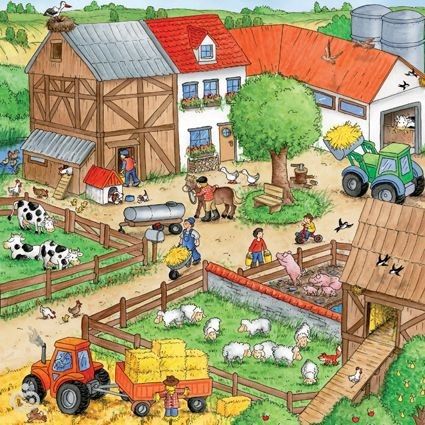 С помощью этих картинок можно искать предметы, обсуждать ситуацию с картинки, составлять рассказы по картинкам, считать предметы и многое-многое другое.