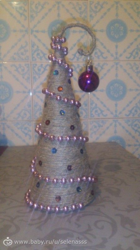 5. проклеиваем последние слои, чтобы нитки не слезли с конуса и загибаем конец нитки внутрь, там тоже ее приклеиваем.