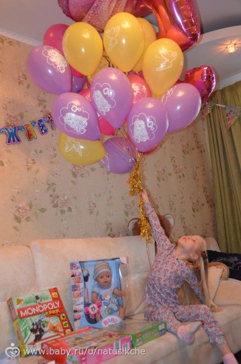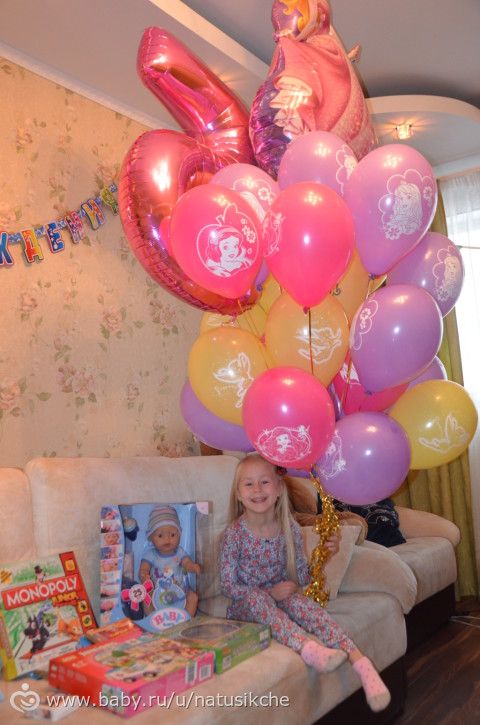 День Рождения выпал на понедельник, поэтому в этот день поздравили доченьку шарами как она и хотела и подарками! А масштабно отмечать будем уже в субботу!