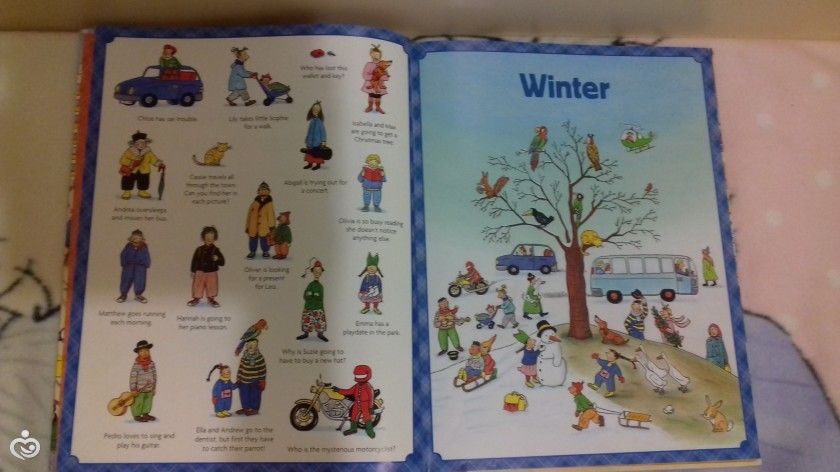 Эту книжку Алиса очень любит разглядывать. Интерес к ней не угасает уже года полтора. И тут тоже вспомнили о ней, просмотрели, обсудили, страничкам про зиму уделили особое внимание.