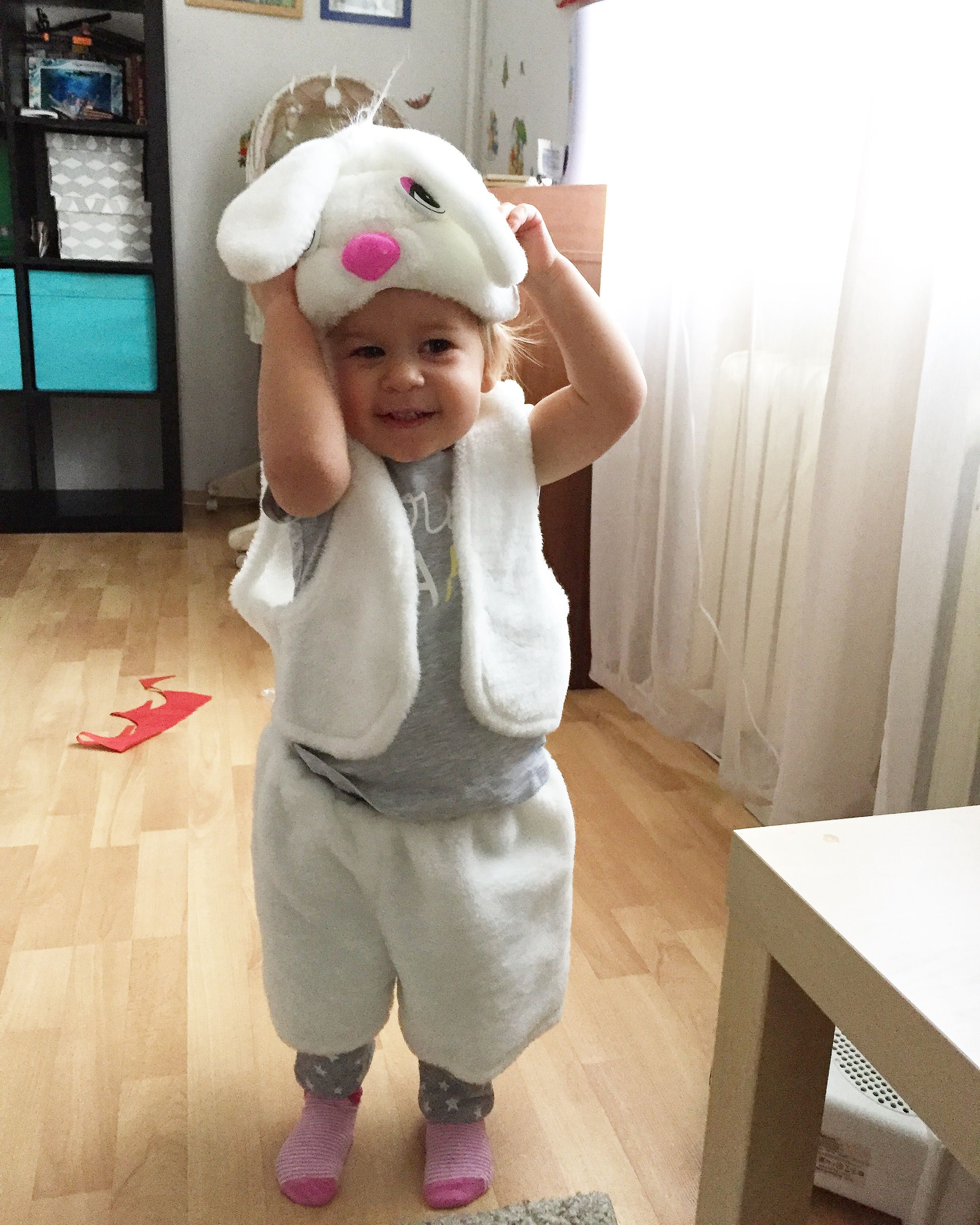Здорово, а Агнию тоже берете на корпоратив? Смотрю костюм зайки ей понравился)) Пузяшка огромный вырос!