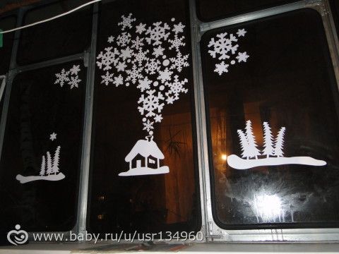 Блин, что же я раньше то не видела… А то у меня по центру елка с дедом морозом и снегуркой, с одного края снеговик, а вот с другого не придумала еще чего… А тут так красиво, все три окна смотрятся как единое.)))