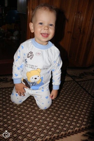 Позавчера были на прививке АКДС. Перенесли плохо. Горел две ночи. Температура под 40. И днём поднималась. Всё время сбивала. Первую ночь практически провёл у меня на руках. Немного засыпал только на мне. Вот такие прививочки.Навесили нас в поликлинике 12800. Ну, это мы знали. Никита мне подражает и часто становится на весы. А вот рост удивил немного — 86. Думала, что 80. Дома его ведь не померяешь.Что мы умеем? Кажется, что всё кроме как говорить. Слова — мама, папа, баба, да, на с особым выражением и восклицанием (настя). Но зато знаем, как говорят животные: ау, рр (медведь), ко-ко, гав-гав, мяу, что-то типа кукареку, ме (козочка), му. Вроде бы все. Остальные слова по первому слогу или по слогу, который больше нравится. Сегодня молоко называл «ко». Парк — это — па, масло — ма и т. д.Лазить любит. Как-то так.