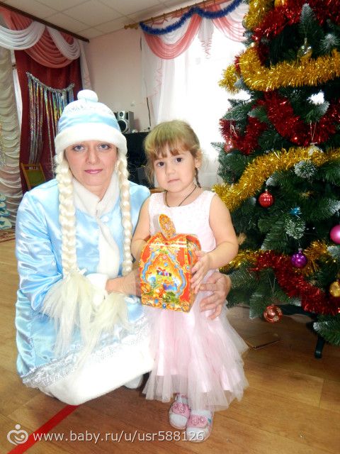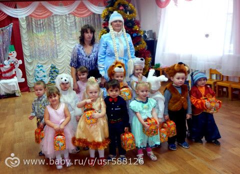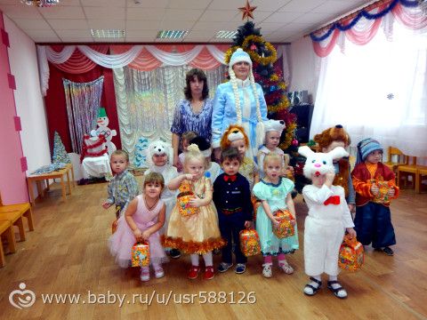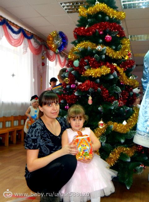 Была без родителей, но нас потом пригласили пофоткать карапузов)) Мы правда, подсматривали через дверную щель, они там так мило хороводы водили))) Вот мое милое дитя, дождавшиеся подарка от деда Мороза)