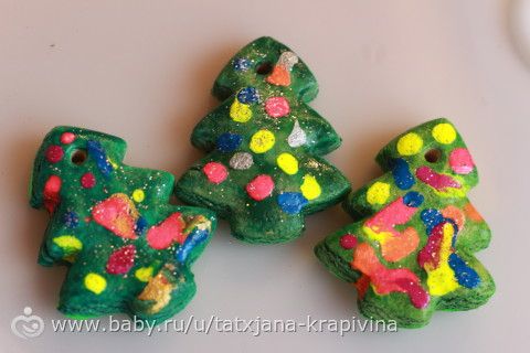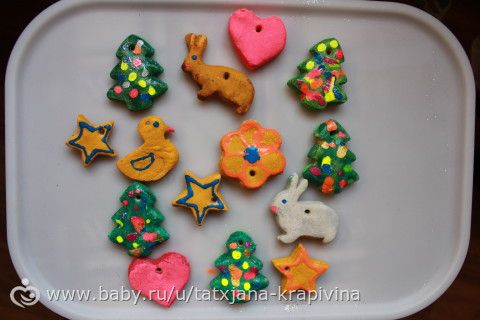 поделки наши из соленого теста доводили до ума — рисовали узоры, покрывали лаком, веревочки вдевали