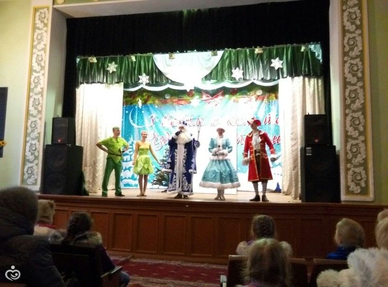 4.01 ходили на представление Питер Пен в местный ДК. Я с Андрюхой не пошла, отправился муж с детьми. Думали родителей не пустят, билета было всего два, но оказалось можно было. Так что папа наш впервые на утреннике побывал, даже поучаствовал в игре от деда Мороза на сцене, довольный)))